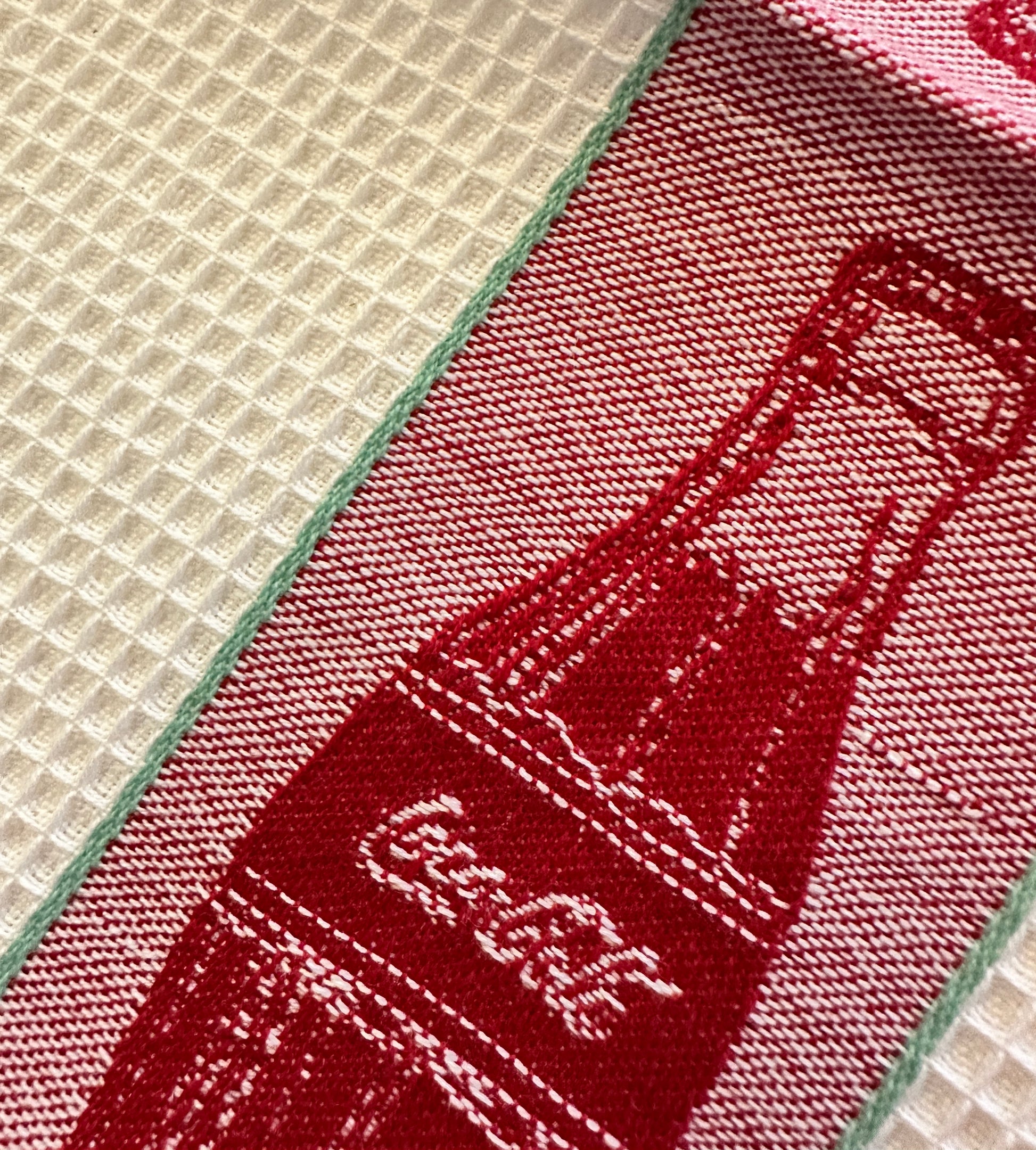 2 Handloomed Coca-Cola waffle weave dish towels cotton Park Designs 1 new 1 used