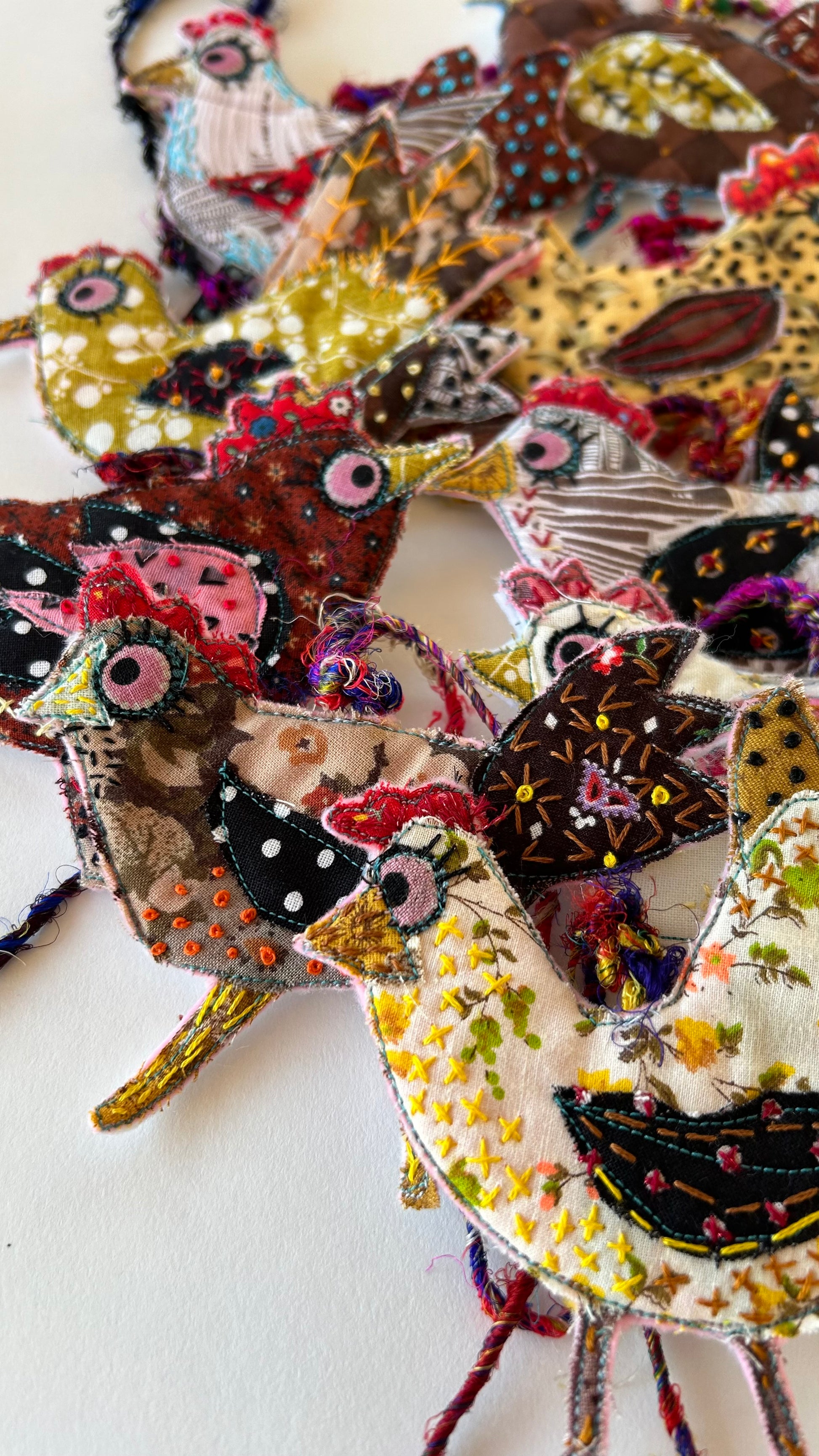 Description : This is a member of my latest ornament collection.I have been tending the chicken flock, stitching together an assortment of fabrics & patterns to make these delightful funky chickens. I have stitched each and every hen with adorable colors and accents on the comb, wing, tail feathers & even the spindly little legs!!These are so adorable I almost can’t part with them. In this listing you’ll receive one hen from the henhouse! Each is backed with white felt & topped with recycled sari yarn. The first picture is the ornament you are purchasing. These are ideal for your Christmas tree or as a package topper. Grab one for your chicken loving friends, a backyard chicken tender, the person you buy fresh eggs from, or treat yourself!!! Happy shopping!