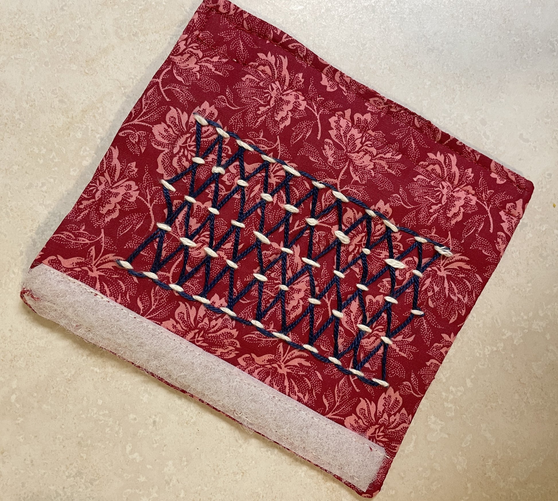 Description : Easily locate your luggage with this handmade luggage handle wrap. This is a one-of-a-kind item. The top of the wrap has been embellished with slow stitching. The wrap has a velcro closure. The back of the wrap has a pocket to put a card (also included) for your contact information. No one will know the card is there but you!