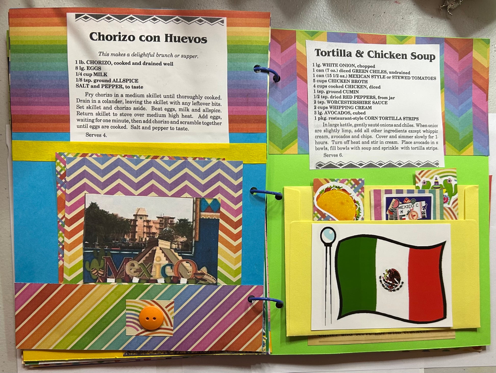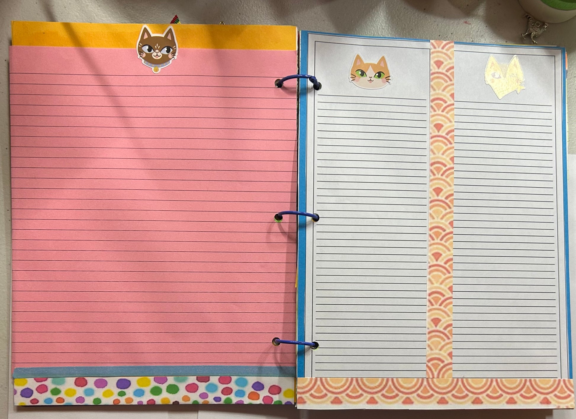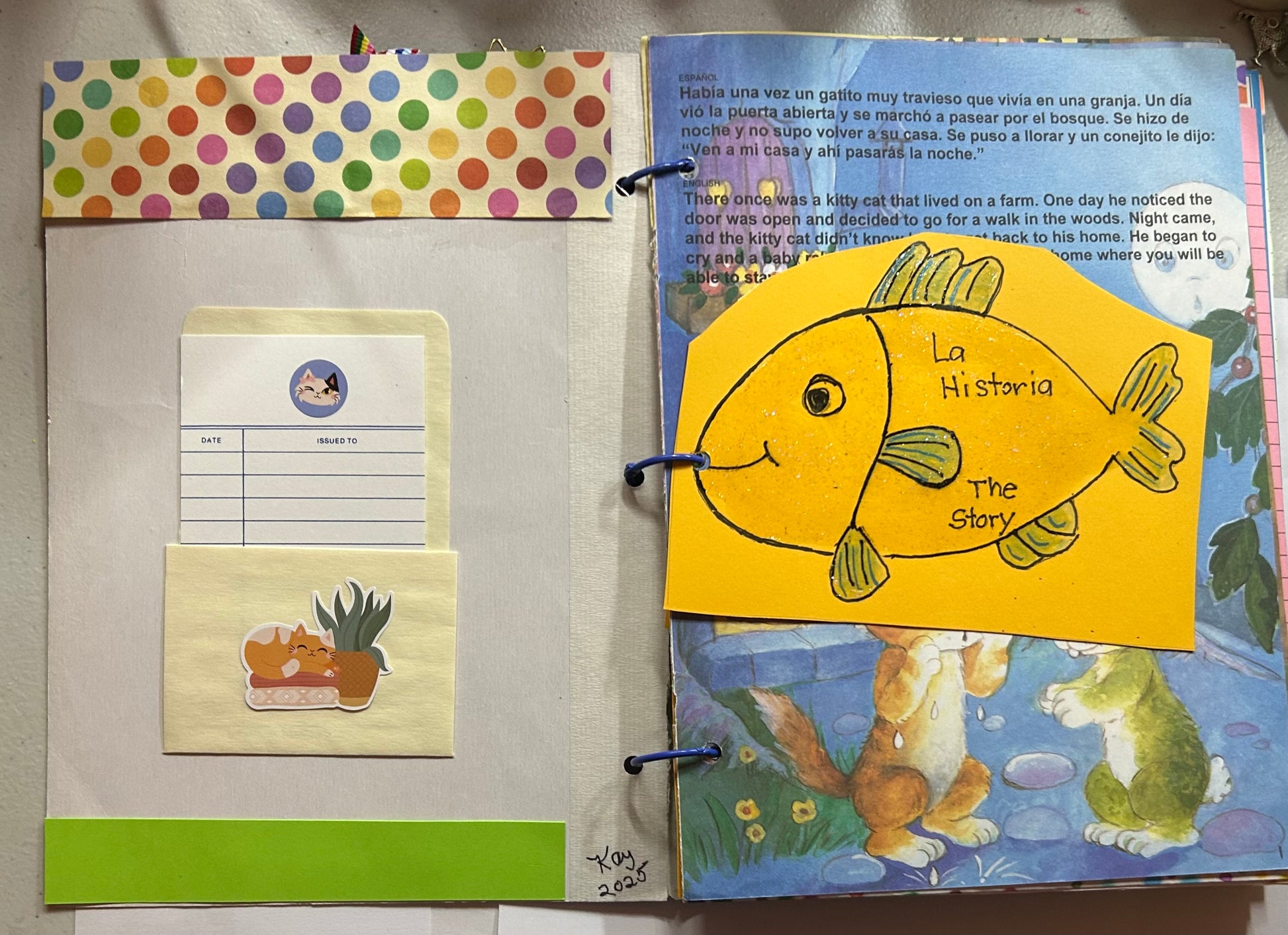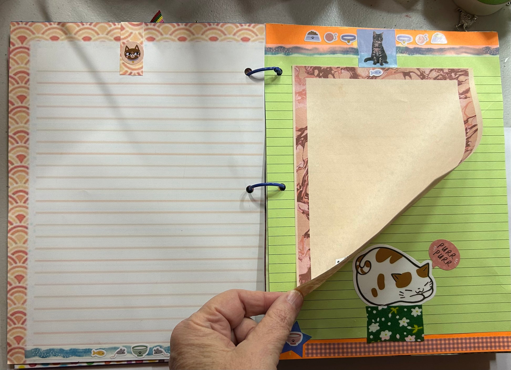 Description : The Mischievous Kitty Cat is a bilingual short story, journal and recipes for you and your cat. Pages are collaged with plenty of journaling spaces. There are 12 recipes for cats and 14 for people. The people food is Mexican. There is also a bit of ephemera and surprises! Come on Cat Ladies get the perfect book for yourself!